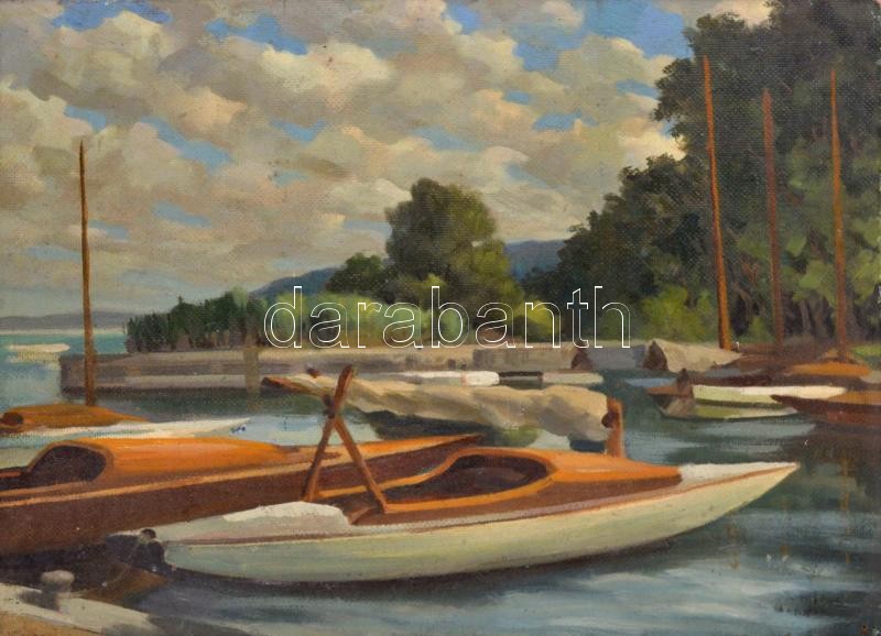Jelzés nélkül: Vitorlások egymás közt, olaj, farost, keretben, 42×55 c...