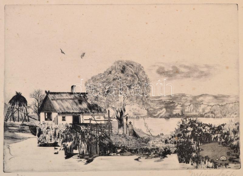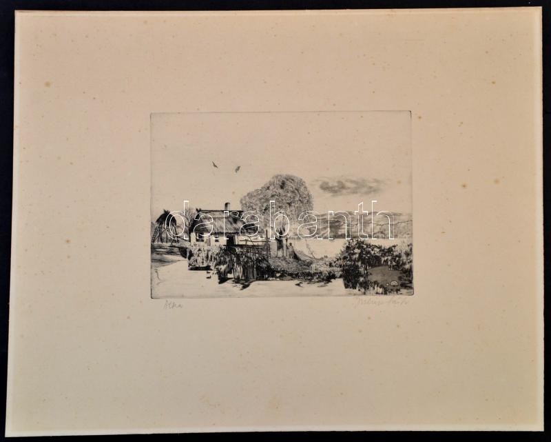 Juhász Sándor (1934-1993): Atka. Rézkarc, papír, jelzett, 18×24,5 cm