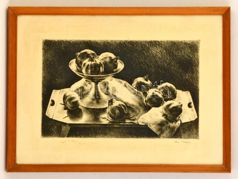 Kiss Terézia (1928- ): Gránátalmás csendélet, rézkarc, papír, jelzett,...