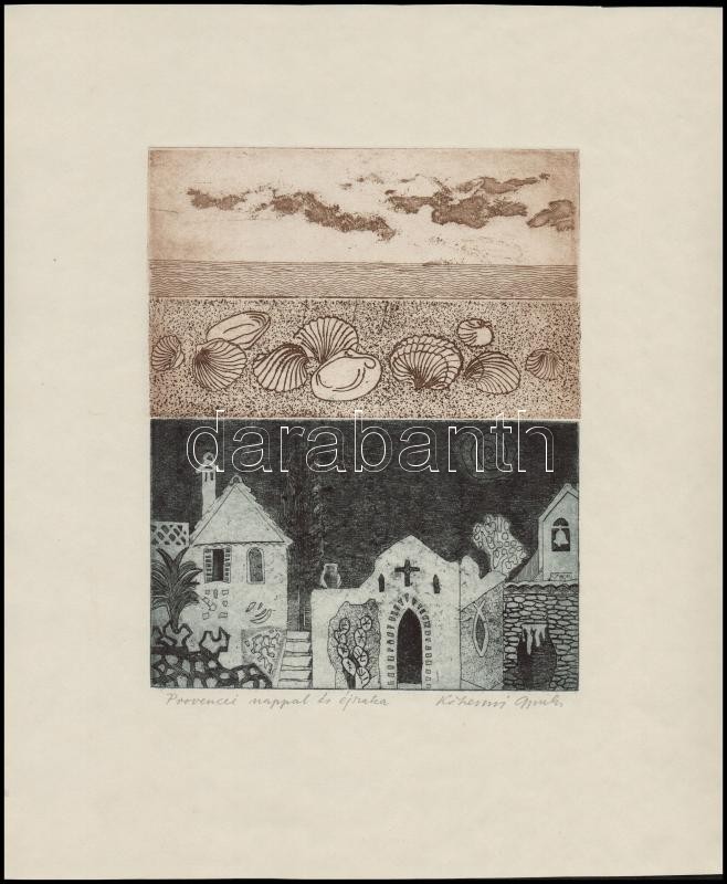 Kőhegyi Gyula (1933- ): Provencei nappal és éjszaka, rézkarc, papír, j...