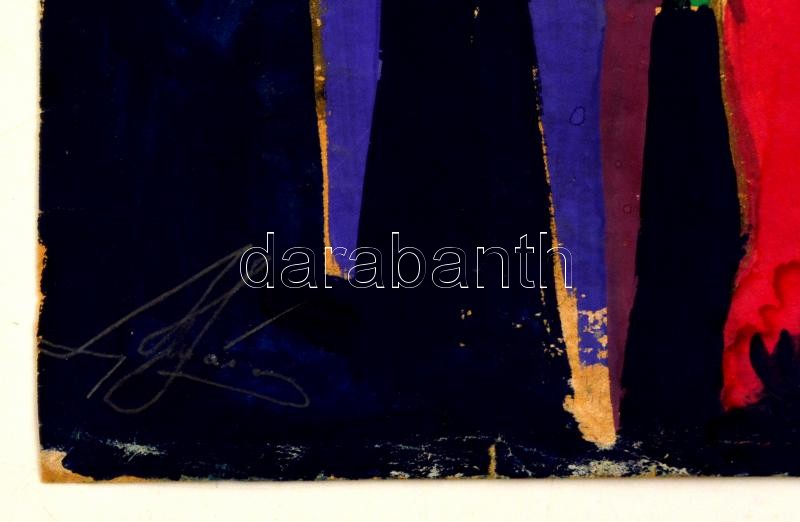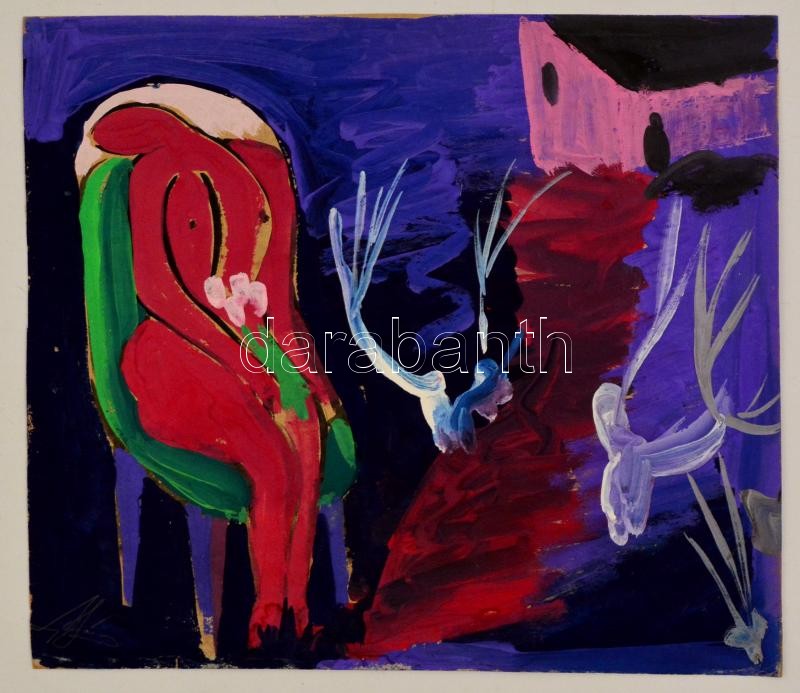 Molnár János (1950- ): Ülő akt agancsokkal, akvarell, papír, jelzett, ...