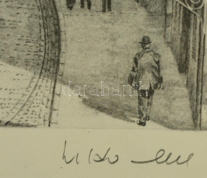 Olvashatatlan jelzéssel: Bremen. Hutfilterstrasse. Litográfia, papír, jelzett, üvegezett keretben, 26×20 cm