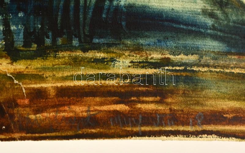 Olvashatatlan jelzéssel: Ház a völgyben. Akvarell, papír, ki szakadáss...