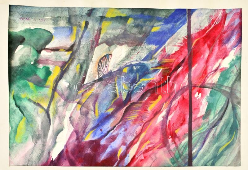 Orosz István (1941-1999): Lángban a hegyoldal. Vegyes technika, papír,...