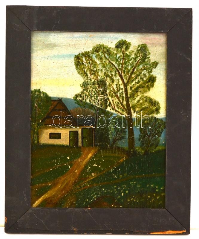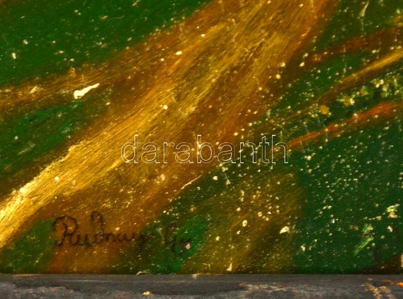 Rudnay jelzéssel: Ház a domb tetőn. Olaj, karton, sérült, keretben, 34...