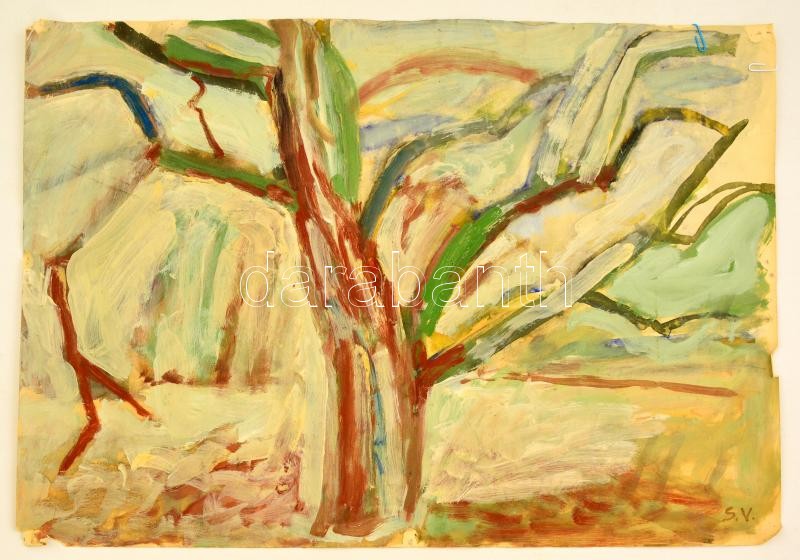 Somlai Vilma (1938-2007): Öreg fa, akvarell, papír, jelzett, 43×61 cm