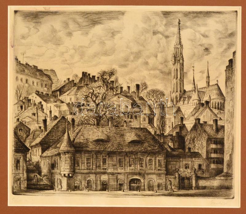 Szabó Vladimir (1905-1991): Fő utca (Buda). Rézkarc, papír, jelzett, p...