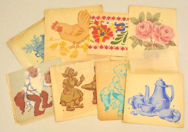 cca 1920 Schönfeld Vilmosné festősablon készítő 11 db festő sablon minta. Akvarell.Jelzettek cca 22x22 cm
