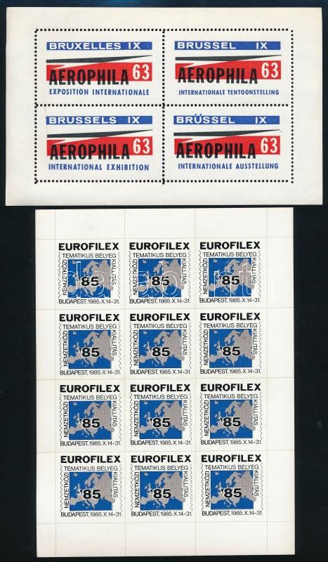 Aerophila '63 Brüsszel + Eurofilex '85 Budapest levélzáró ki...