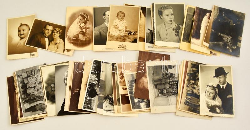 cca 1920-1952 Régi fotólapok, esküvői fotók, műtermi csoportképek, portrék, 40 db, 13,5×8,5 cm