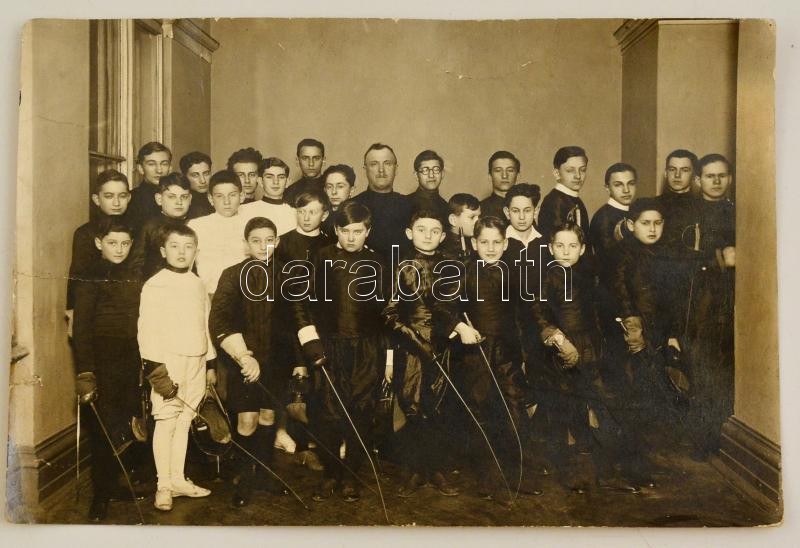 cca 1930 Szeged. Vívó gyermekek vívóteremben. 17x12 cm