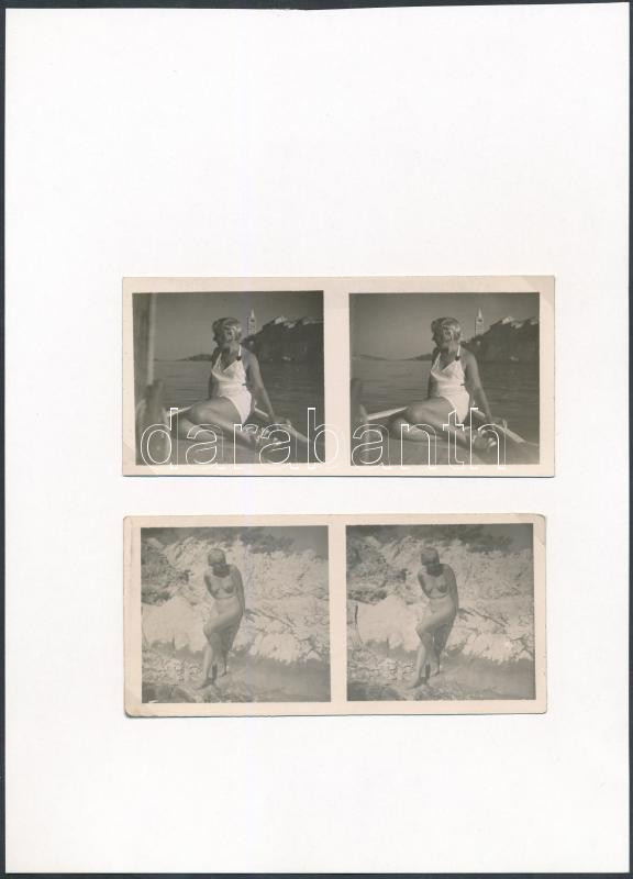 Description: cca 1937 Dr. Csörgeő Tibor (1896-1968): Sztereofotók egy aktmodellről, 2 db jelzetlen képpár a szerző hagyatékából, a fotók mérete 5,5x5,5 cm, papírméret 6x13 cm