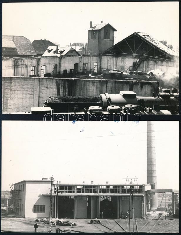 cca 1960-1970 Pécs, MÁV fűtőházának építése, 2 db feliratozott, pecsét...
