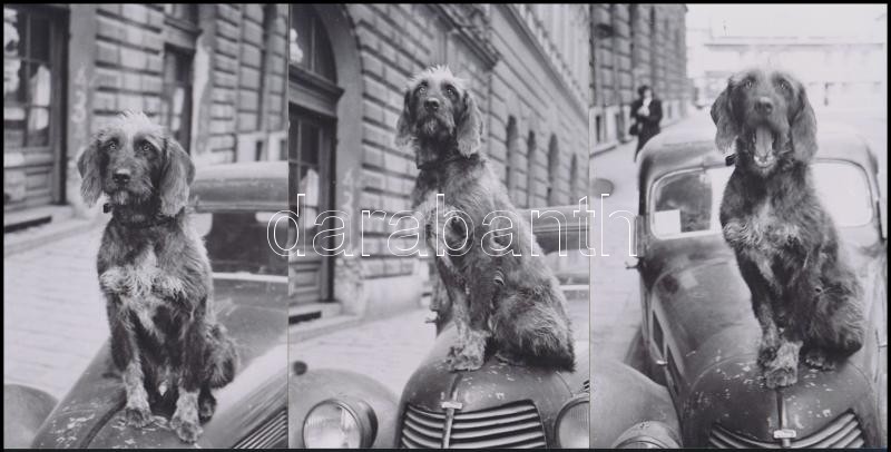 cca 1948 Álmos a kocsira telepített riasztó, Rózsa György fotóriporter hagyatékában őrzött 3 db negatív modern nagyítása, 15x10 cm