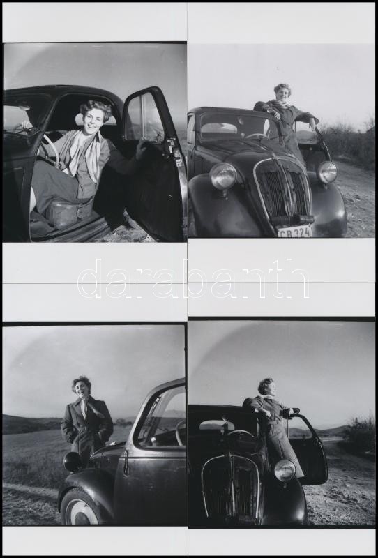 Description: cca 1960 Emancipáció, modern nő a volánnál, Kotnyek Antal (1921-1990) fotóriporter hagyatékában őrzött 4 db negatív modern nagyítása, 15x10 cm +