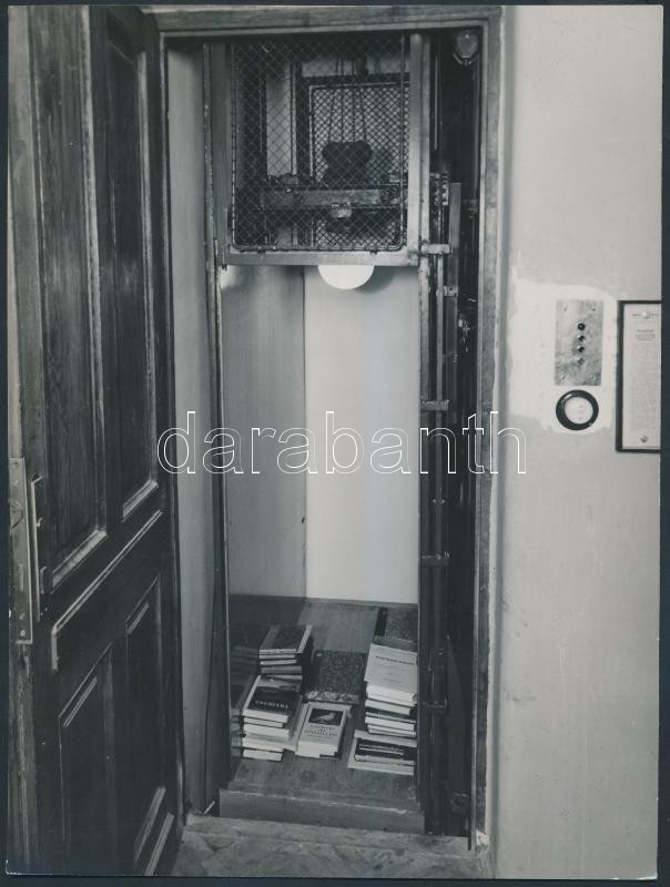 cca 1960 Vadas Ernő (1899-1962): Lift a könyveknek, pecséttel jelzett vintage fotó, 24x18 cm