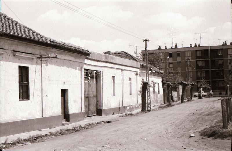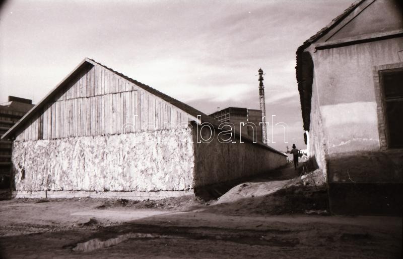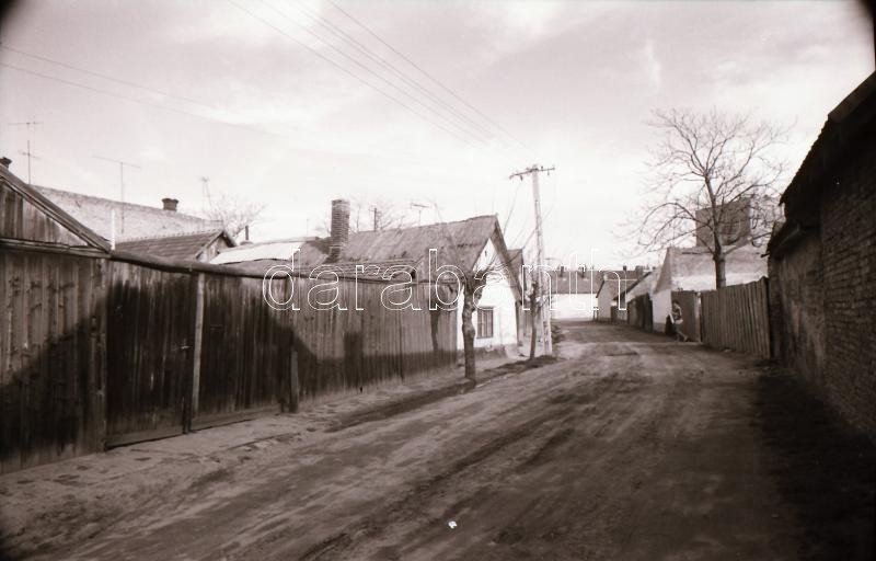 Description: cca 1982 Kecskeméti városképek: Simon u., Batthyány u., Damjanich u., Kisfaludy utca, Kádár u., Új u., 25 db szabadon felhasználható vintage negatív, 24x36 mm