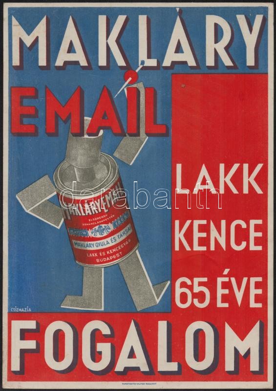 cca 1930 Makláry Email zománcfesték, Makláry Gyula és Társai Lakk és K... https://www.darabanth.com/en/329-Online-auction/329.0/Other-collectibles/Poster~500031/cca-1930-Maklary-Email-zomancfestek-Maklary-Gyula-es-Tarsai-Lakk-es-Kemencegyar-reklam-pla~II1834694