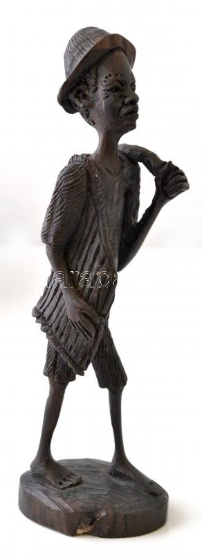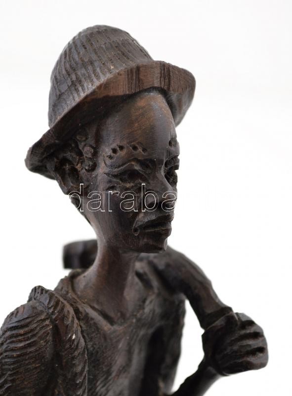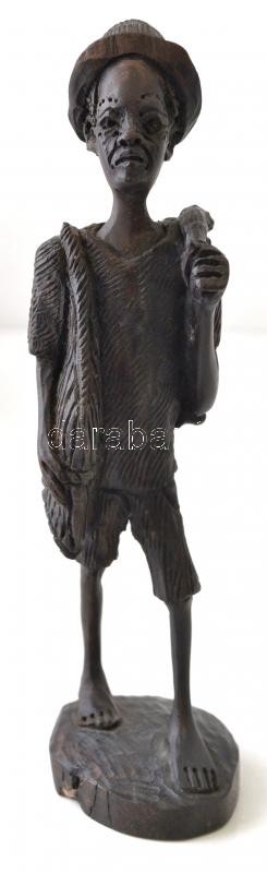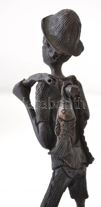 Horgász a zsákmányával. Faragott fa szobor. 20 cm /Fischer with fish