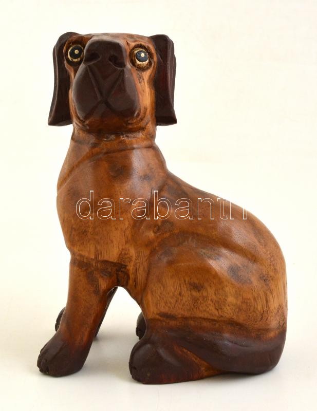 Jelzés nélkül: Kutyus. Faragott festett fa, karcolással, m: 25 cm