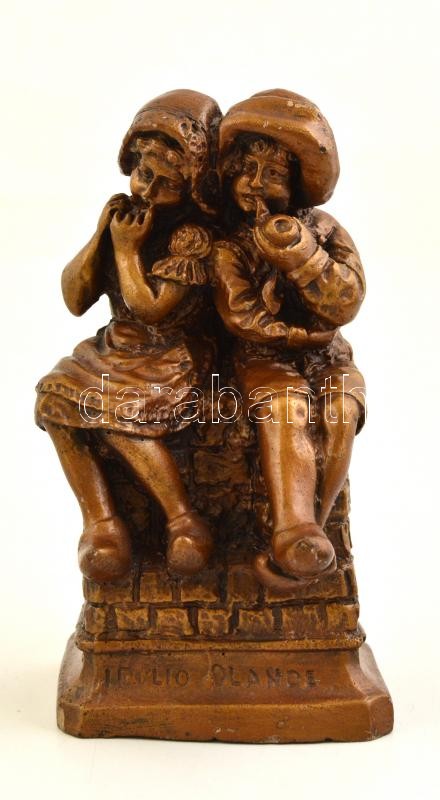 Jelzés nélkül: Párocska "Idilio". Festett gipsz, kopott, m: 22 cm