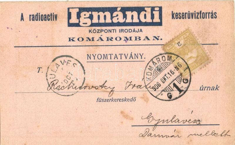 Komáromi Schmidthauer-féle Igmándi keserűvíz kinyitható reklámlapja / ...