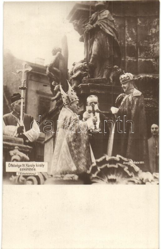 IV. Károly király eskütétele Budapesten a Szentháromság szobornál. Alexy felvétele / Coronation ceremony of Charles IV, taking the oath in Budapest. So. Stpl