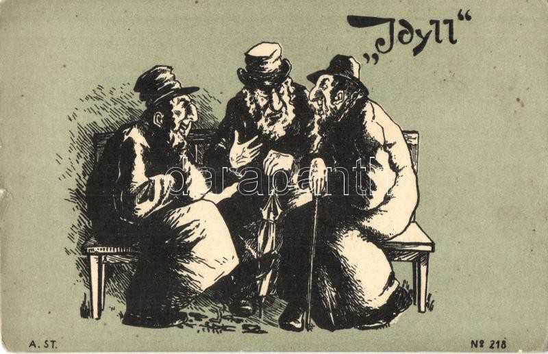 Idyll, A. ST. No. 218. / Judaica, Jewish men, art postcard (kis szakad...
