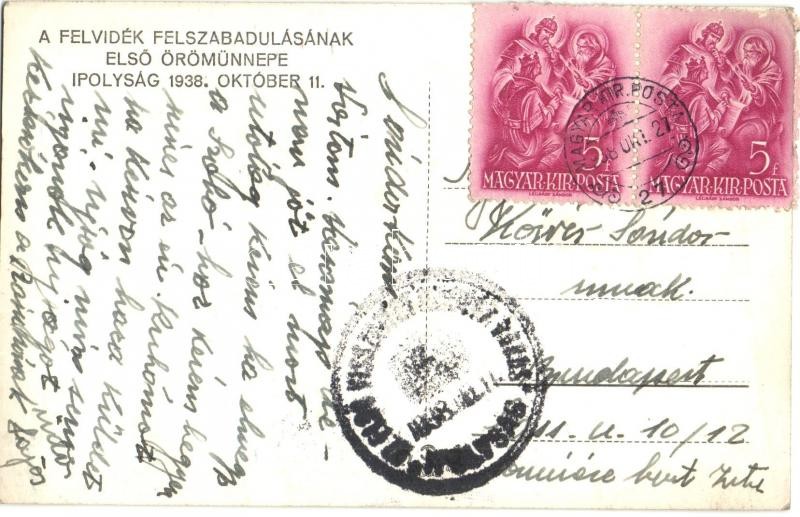 1938 Ipolyság, Sahy; bevonulás / entry of the Hungarian troops, "1938 Az Első Visszatért Magyar Város" So. Stpl