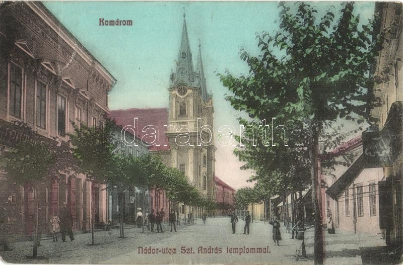 Komárom, Komárno; Nádor utca, Szent András templom, üzletek. Kiadja La...