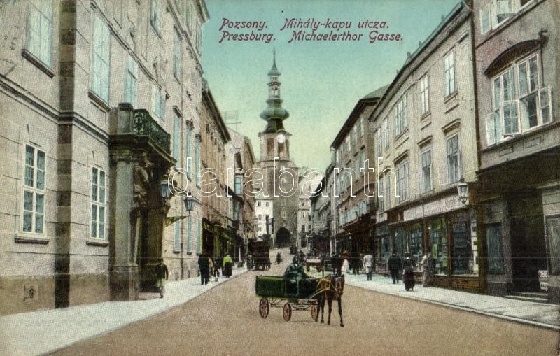 Pozsony, Pressburg, Bratislava; Mihály kapu utca, üzletek / Michaelert...