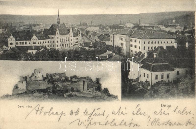 1904 Déva, Deva; látkép, Déva vára. Kiadja Hirsch A. / general view, castle
