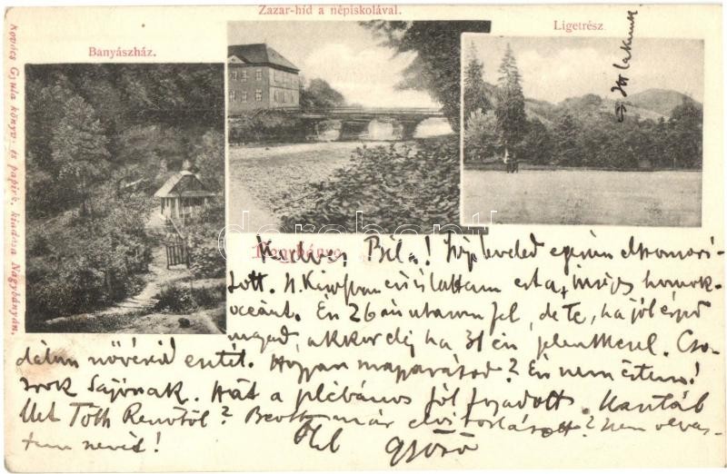 1904 Nagybánya, Baia Mare; Bányászház, Zazar híd, népiskola, liget / m...
