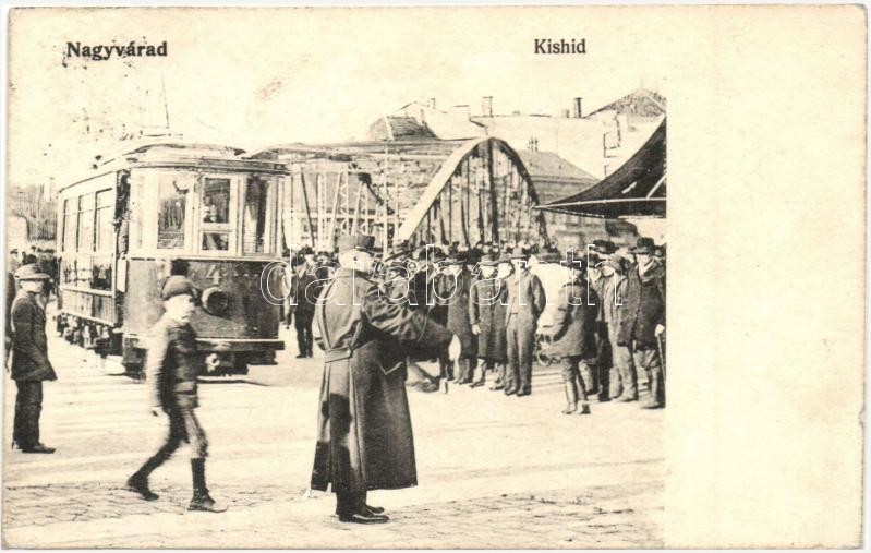 1909 Nagyvárad, Oradea; Kis híd, villamos / bridge with tram