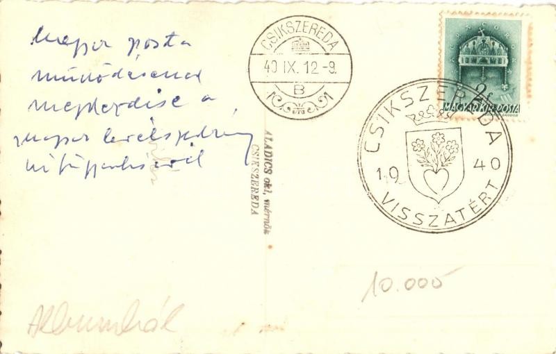 1940 Csíkszereda, Miercurea Ciuc; bevonulás, a magyar posta működéséne... https://www.darabanth.com/en/329-Online-auction/329.0/Postcards/Transylvania~2000006/1940-Csikszereda-Miercurea-Ciuc-bevonulas-a-magyar-posta-mukodesenek-megkezdese-a-magyar-l~II1837429