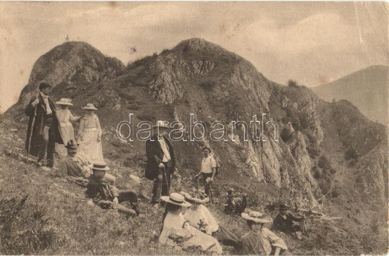 Brassó, Kronstadt, Brasov; Schulerspitze / Keresztényhavas csúcsa kirándulókkal. Photoglob / Postavarul munte / mountain peak with hikers (EB)