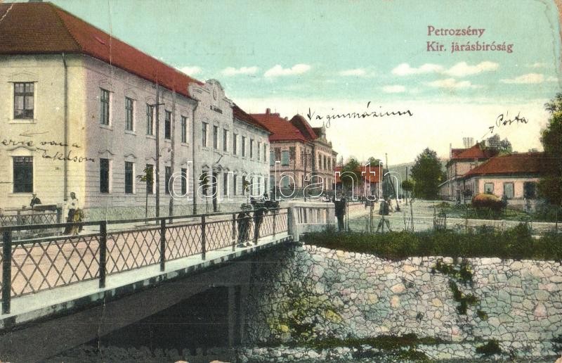 Petrozsény, Petrosani; Kir. Járásbíróság, híd, gimnázium, posta. Kiadj...