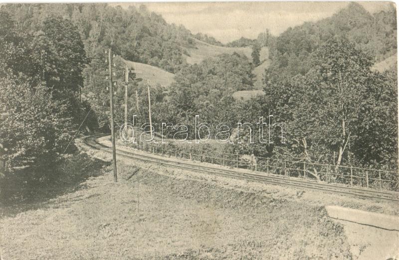 Description: Petrozsény, Petrosani; O parte din calea ferata spre cetatea Boli (Pestera Bolii) / A Boli-barlanghoz vezető vasút részlete, vasúti vonal, sínek / railway line to the Bolia cave (EK)