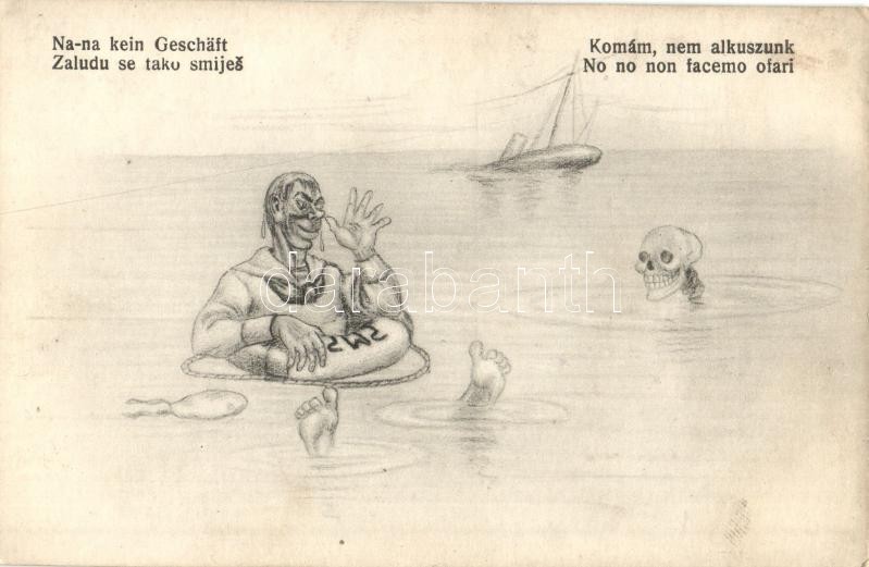 Komám, nem alkuszunk / na-na kein Geschäft / No no non facemo ofari / Zaludu se tako smijes / K.u.K. Kriegsmarine, mariner humour, C. Fano Pola 1917