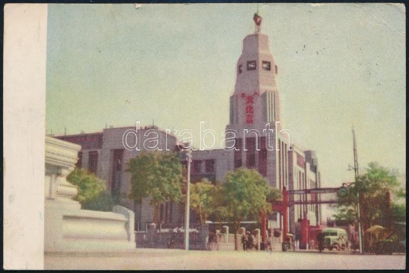 1957 Peking, Magyar Labdarúgó Szövetség tagjainak üdvözlÅ‘ képeslapja KÃnából, az utánpótlás válogatott túrájáról Honti György MLSZ elnöknek, rajta saját kezű aláÃrásaikkal Hámori László (1914-1970), Ember József (1903-1974) kÃnai labdarúgó válogatott edzÅ‘je (1955-1957) és mások aláÃrásaival, 1957.07.21.