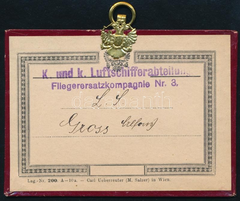 cca 1916 Osztrák-magyar léghajószázad katonájának névtáblája réz címer...