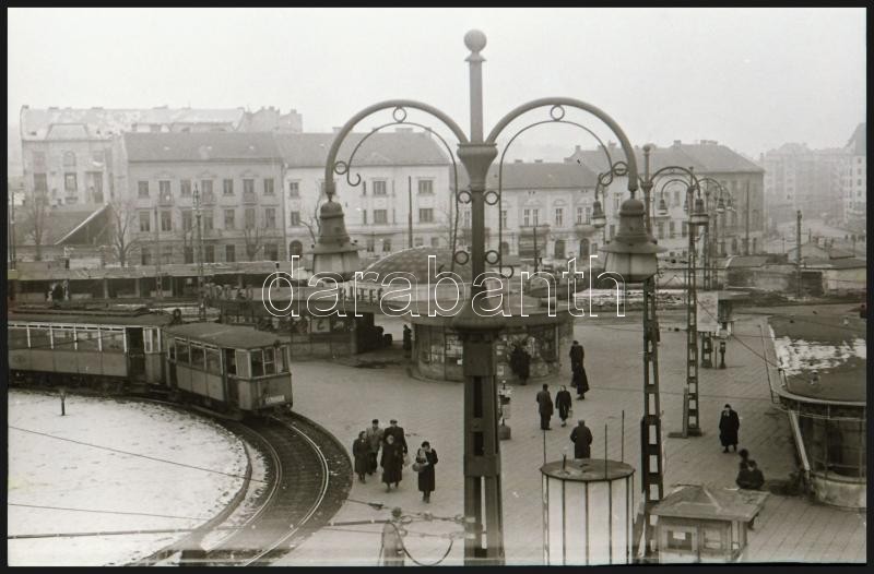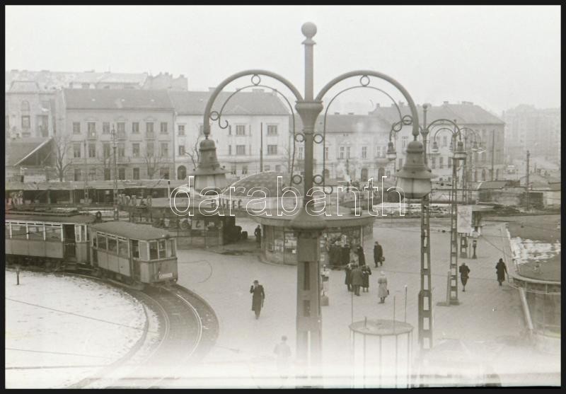 cca 1948 Budapest, Széll Kálmán tér villamossal, Kotnyek Antal (1921-1990) budapesti fotóriporter hagyatékából 3 db vintage negatív, 24x36 mm