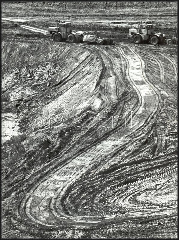 Description: cca 1974 Gebhardt György (1910-1993) budapesti fotóművész hagyatékából jelzés nélküli, vintage fotóművészeti alkotás, a magyar fotográfia szocreál korszakából (Felszíni bánya), 29,5x39,5 cm