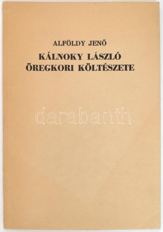 Alföldy Jenő: Kálnoky László öregkori költészete. Békécsaba, 1987., Me... https://www.darabanth.com/en/33-Major-auction/33.1/Books/Books-Other-rarities~13891/Alfoldy-Jeno-Kalnoky-Laszlo-oregkori-kolteszete-Bekecsaba-1987-Megyei-Konyvtar-Kia~II2097462