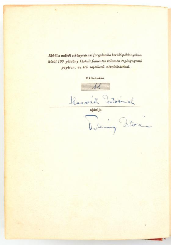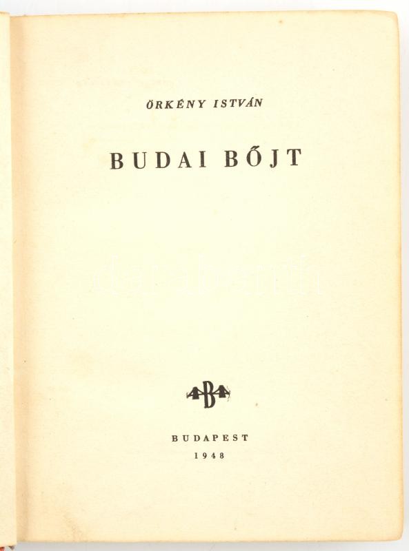 Örkény István: Budai böjt. Bp., 1948., Budapest Székesfőváros Irodalmi Intézete,(Budapest Székesfőváros Házinyomdája), 250 p. Kiadói aranyozott félvászon-kötés, kopott borítóval. Első kiadás. Számozott (100/11.), névreszóló, a szerző, Örkény István (1912-1979) által aláírt példány.