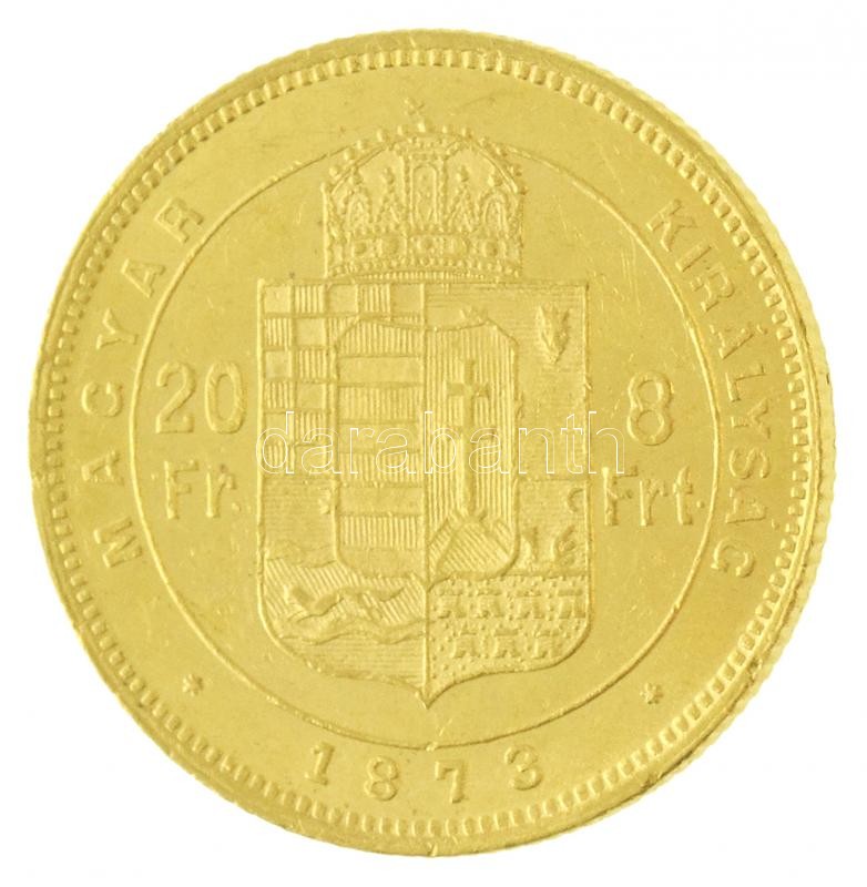 https://www.darabanth.com/en/33-Major-auction/33.1/Numismatics/Gold-coins-and-commemorative-medallions~13836/1873KB-8Ft20Fr-Au-Ferenc-Jozsef-Kozepcimer-Kormocbanya-6-46g0900-T1-Hungary-1873~II2129945