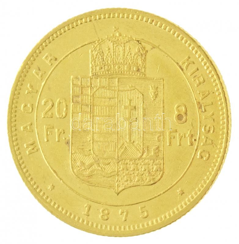 https://www.darabanth.com/en/33-Major-auction/33.1/Numismatics/Gold-coins-and-commemorative-medallions~13836/1875KB-8Ft20Fr-Au-Ferenc-Jozsef-Kozepcimer-Kormocbanya-6-47g0900-T1-Hungary-1875~II2129975