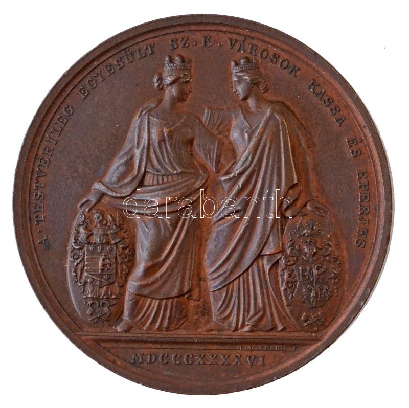 Josef Daniel Boehm (1794-1865) 1846. "Szívesen fogadják az Aug. 10-16 egybegyült Magyar Orvosokat és Természetvizsgálókat / A testvérileg egyesült Sz. K. városok Kassa és Eperjes" kétoldalas Br emlékérem (68,69g/51mm) T:2 kis ph. / Hungary 1846. "The United Free Royal Cities of Kassa and Eperjes / Welcomes the Hungarian Physicians and Naturalist on 10-16th of August" two-sided Br commemorative medallion. Sign.: Josef Daniel Boehm (68,69g/51mm) C:XF small edge errors