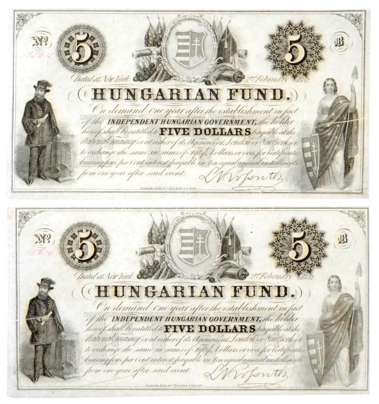 https://www.darabanth.com/en/33-Major-auction/33.1/Numismatics/Hungarian-and-foreign-banknotes~13837/1852-5USD-B-Kossuth-banko-piros-kezi-sorszamozassal-nyomdai-papirranccal-2x-sorszamkov~II2102827