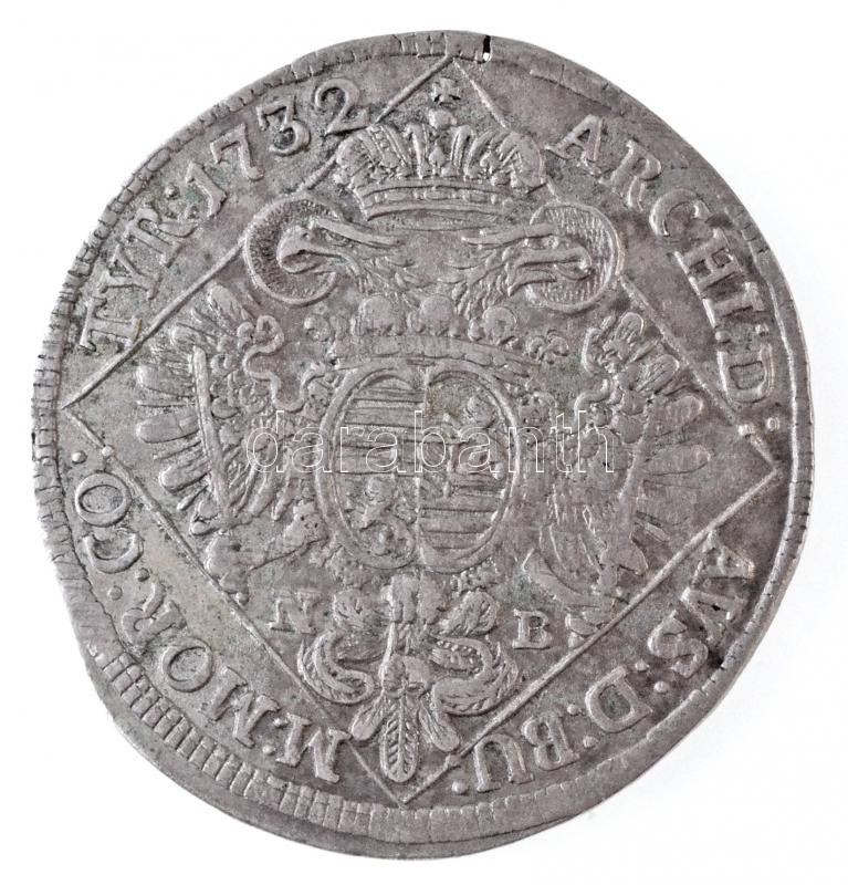 Description: 1732N-B 1/4 Tallér Ag "III. Károly" Nagybánya (7,08g) T:2 kis rep. / Hungary 1732N-B 1/4 Thaler Ag "Charles III" Baie Mare (7,08g) C:XF small crack